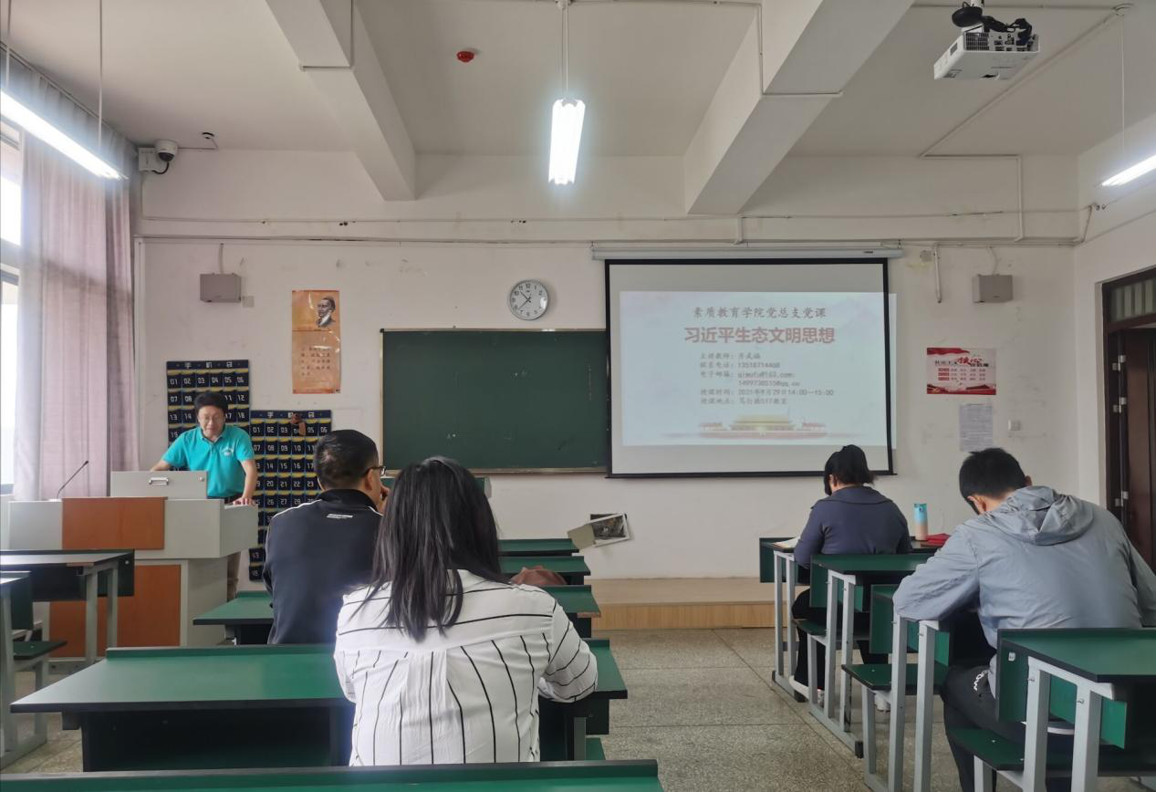 2021年9月29日,齐武福副董事长以习近平生态文明思想为题在笃行楼517教室为太阳成城集团tyc234cc官网全体教师讲授党史学习教育专题党课,太阳成城集团tyc234cc官网全体教师参加。
