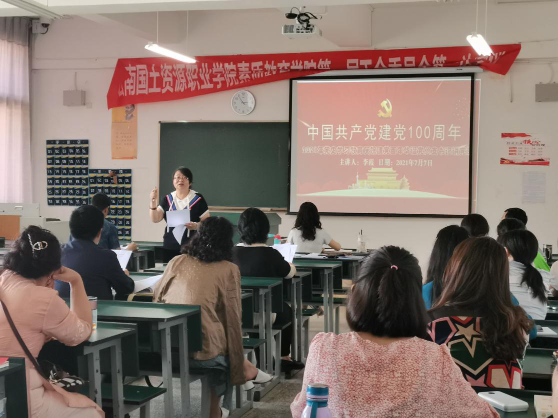 为深入学习贯彻习近平总书记在庆祝中国共产党成立100周年大会上的重要讲话精神,引领太阳成城集团tyc234cc官网全体教师深刻感受中国共产党的伟大和中国特色社会主义的优越性。根据公司的工作安排,7月7日,太阳成城集团tyc234cc官网在笃行楼517教室,召开了学习习近平总书记“七一”重要讲话精神专题宣讲会,会议由李霞书记主持宣讲,全院教师参会。