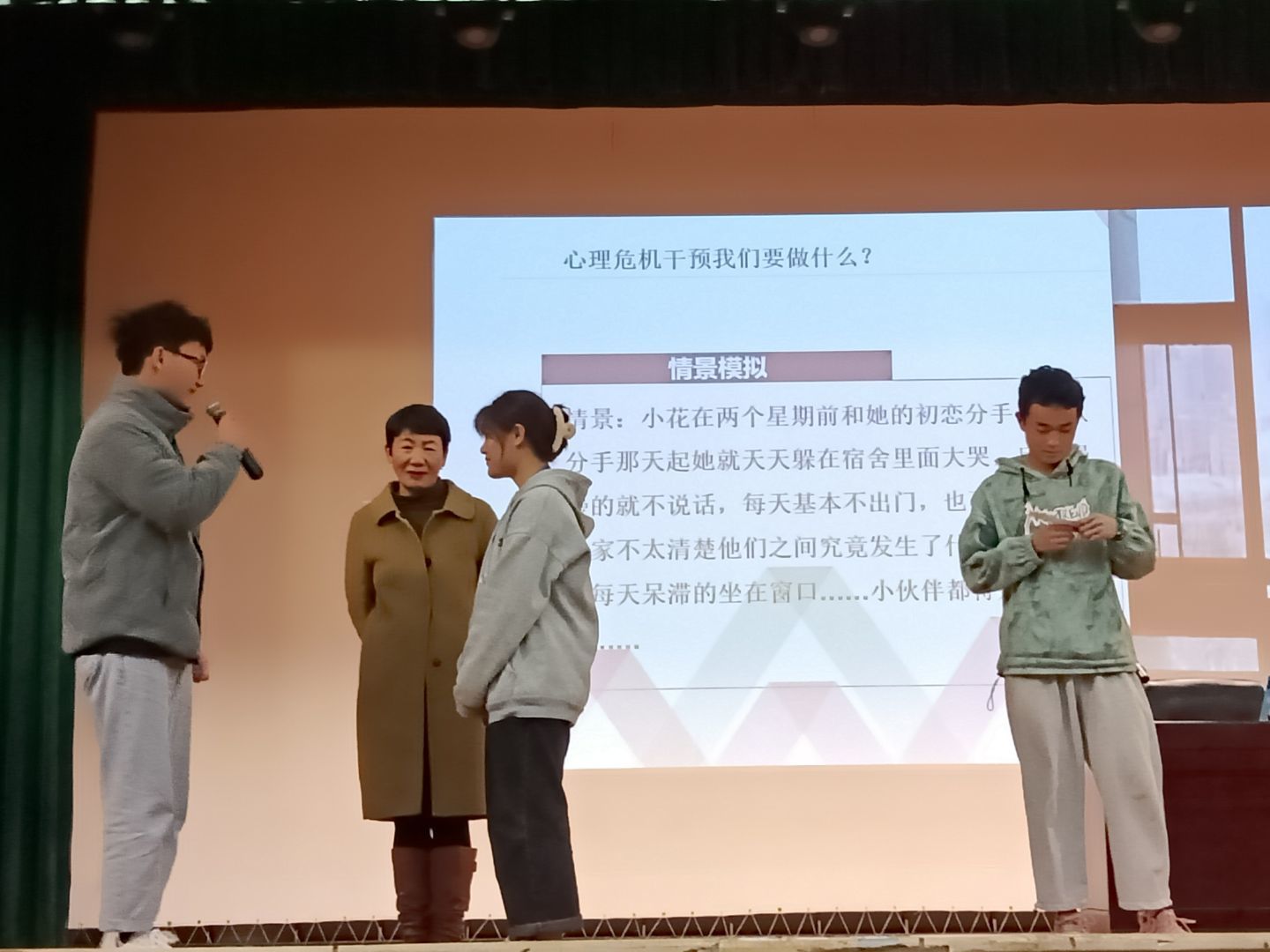 陈老师以歌曲曾经我也想过一了百了导入认识与了解心理危机如何识别老员工心理危机老员工心理危机的应对方法三个部分,向同学们系统讲解了心理危机信号识别、紧急心理危机情况的干预流程和注意事项,求助的资源和途径等内容,让同学们对心理危机有了基本的认识,学会识别身边潜在的危险信号,同时通过现场情境模拟的方式,形象深刻的让同学们领会和掌握处理紧急情况的方法。