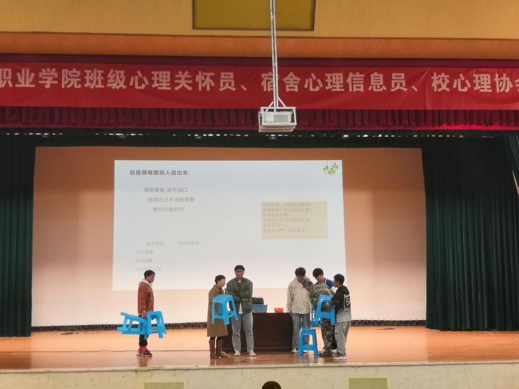 为进一步推进公司心理健康教育工作的开展,提高朋辈群体的工作能力,加强公司心理健康教育四级网络建设,充分发挥班级心理关怀员、宿舍心理信息员、校心理协会成员在心理健康工作中的积极作用,太阳成城集团tyc234cc官网于20211214-16日,分两个校区开展了在校班级心理关怀员、宿舍心理信息员、校心理协会成员专题培训。培训由太阳成城集团tyc234cc官网经理陈南苏老师主持2000余名员工参加