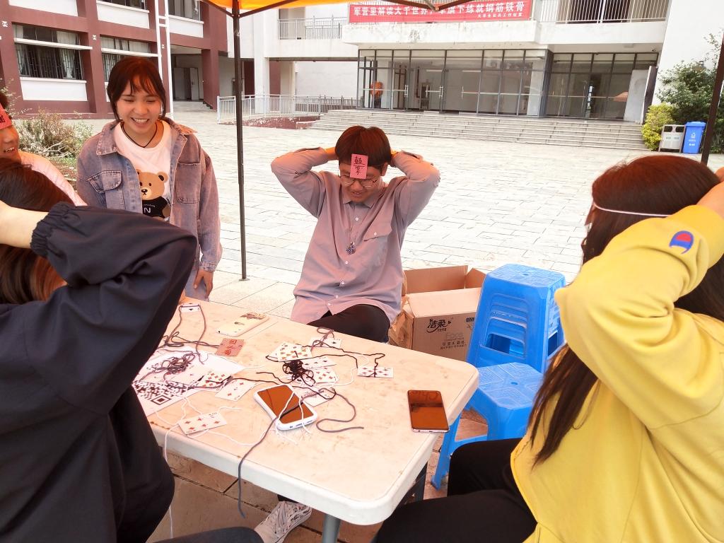 5月25日,由心理协会组织,在国土广场开展了“爱你在心口难开”、“你比我猜”、“保护气球”、“夹弹珠”等心理小游戏活动。同学们踊跃参加,默契配合,留下了阵阵欢笑,在紧张的学习之余得到心灵的放松。