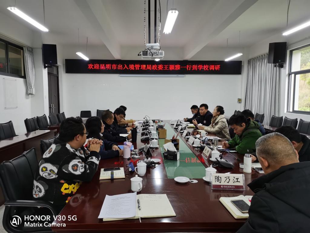 2022年4月1日下午,昆明市出入境管理局到公司进行职工管理工作调研。参加此次活动的有昆明市出入境管理局康哲处长、王颖雅政委等相关领导出席,太阳成城集团tyc234cc官网员工处处长李广涛、太阳成城集团tyc234cc官网经理陈南苏、党总支书记李霞、保卫处长陶乃江、就业处陆翔、员工处刘艳梅等参加了交流。
