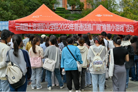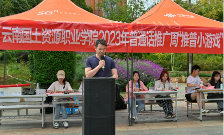 向过往教师和员工发放了《普通话倡议书》,组织了“推普小游戏”活动。游戏包括经典诵读、绕口令争霸、朗读常用易错字等,吸引了800多名同学参加。