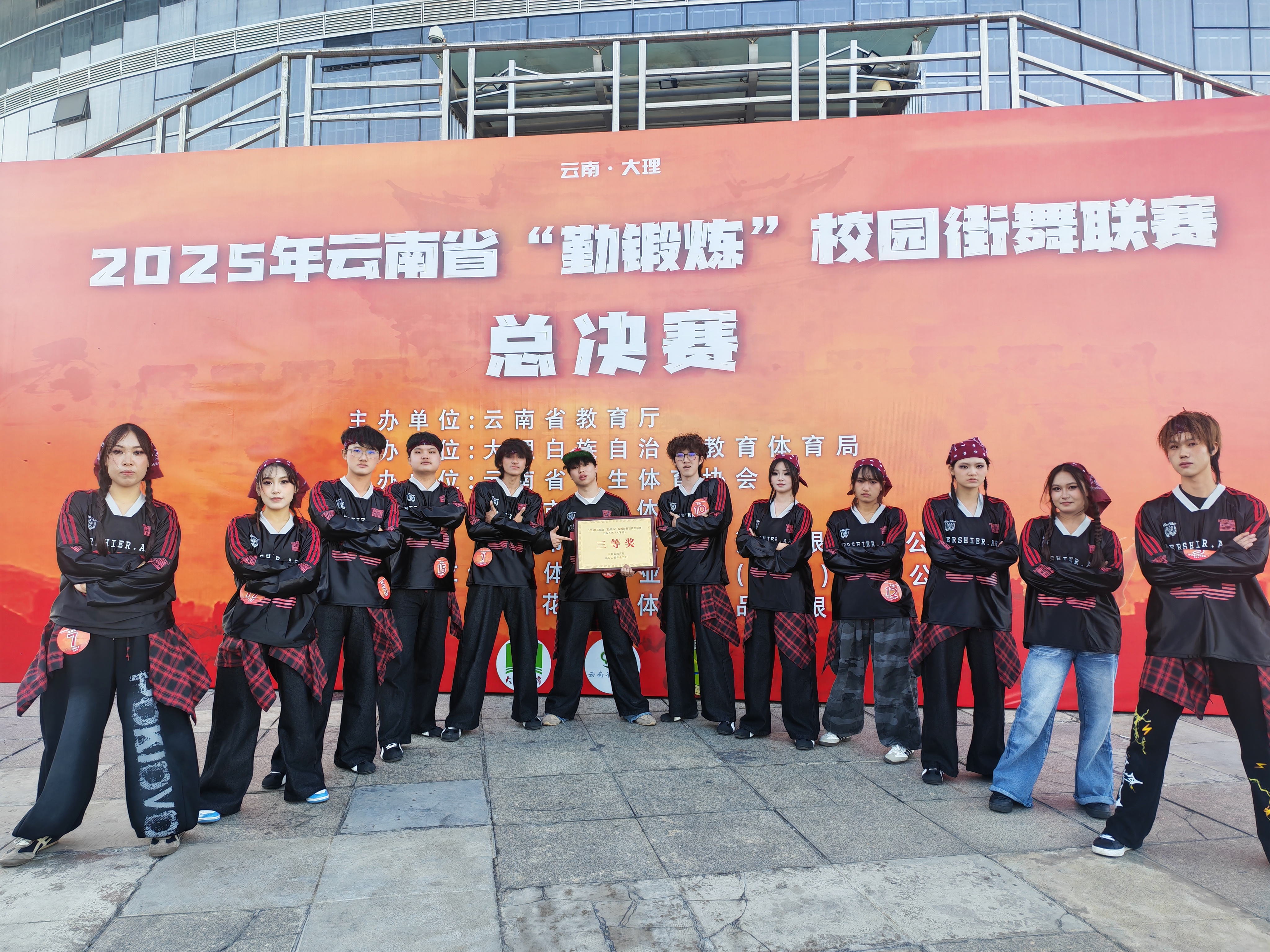 12月7日,由云南省教育厅举办的2025年云南省“勤锻炼”校园街舞联赛在大理州国际奥林匹克体育中心圆满落下帷幕。公司由12名运动员组成的代表队参加了此次比赛。经过激烈的角逐,公司自编齐舞项目,荣获大学组三等奖。