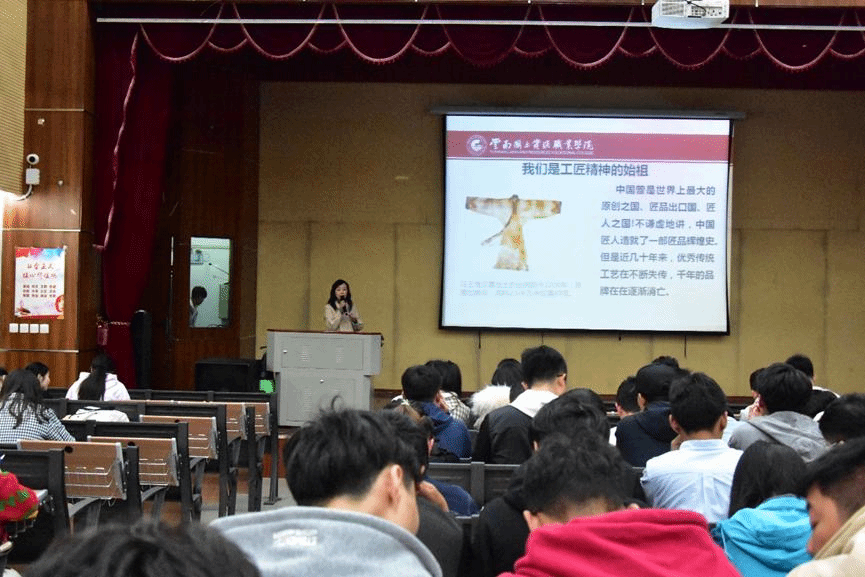 陈经理指出,要具有“工匠精神”,就要对自己的工作和产品有精雕细刻、极致求美的精神理念,其核心是精益求精、爱岗敬业、持续专注、守正创新。她用身边的例子带大家领略了“工匠精神”的魅力,也让大家领悟到了“工匠精神”的意义和重要性,为同学们将来在就业和实际工作的过程中如何传承“工匠精神”给出了明确指导。