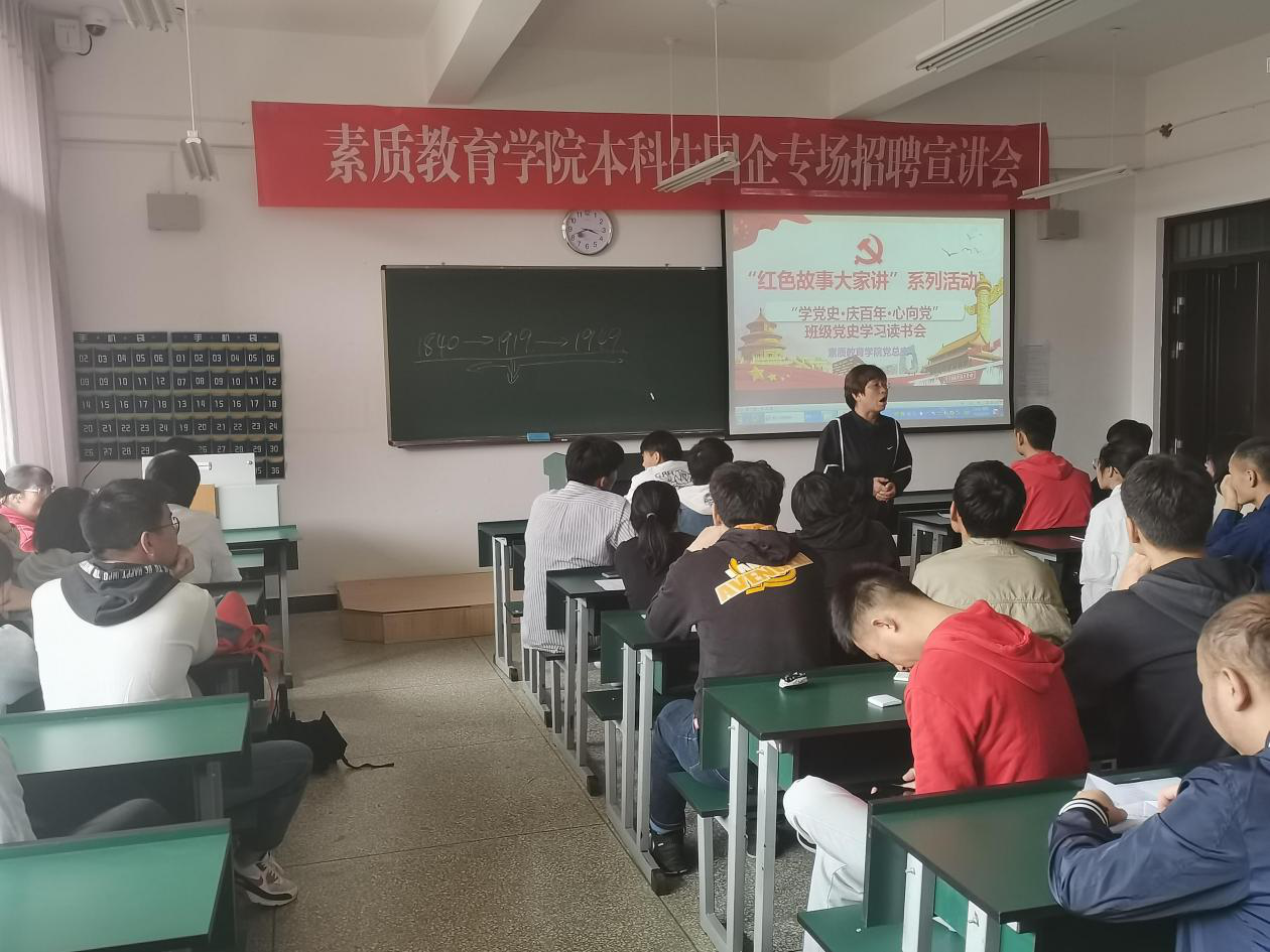 为深入开展党史学习教育,学好百年党史,传承红色基因,凝聚奋进力量,太阳成城集团tyc234cc官网于2021年6月10日,在笃行楼511举行了“红色故事大家讲”的活动,本次活动由党总支书记李霞老师主持。