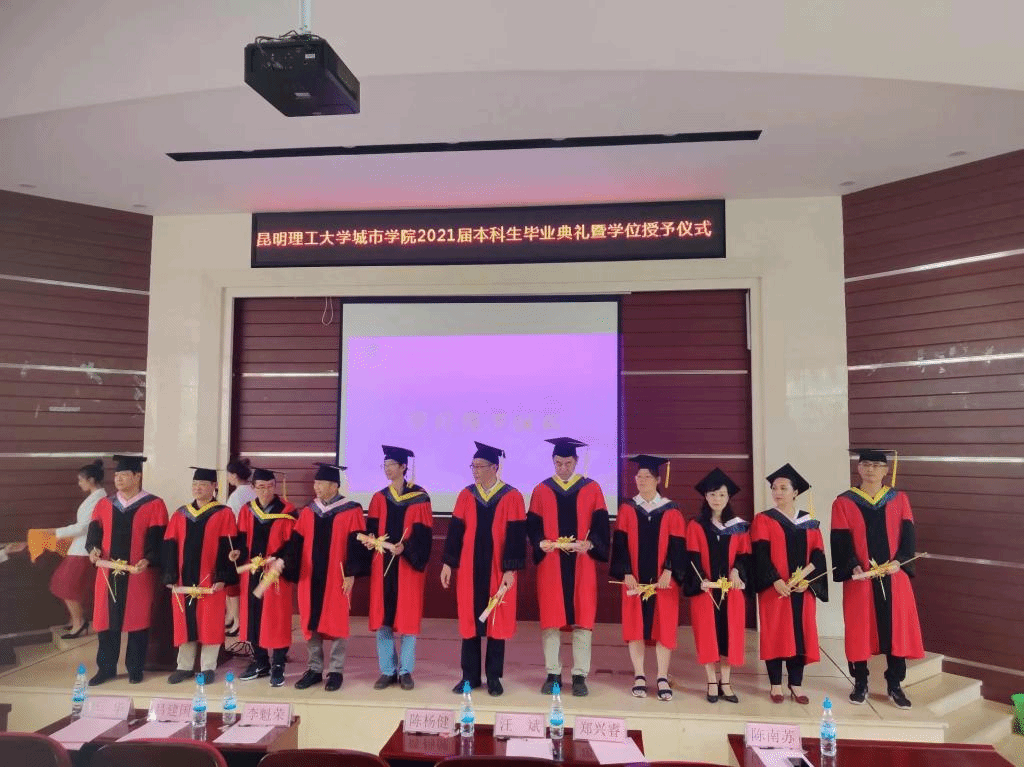 毕业典礼由城市公司李华副经理主持,首先是汪斌书记宣读《关于授予昆明理工大学城市公司2021届毕业生学士学位的决定》随后宣读了省级优秀毕业生名单并邀请现场领导为他们颁发了荣誉证书。