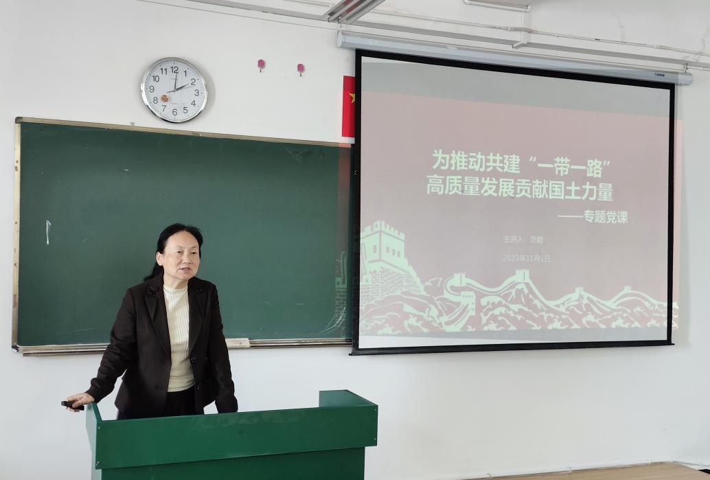 2023年11月1日,公司党委副书记、董事长陈颖同志到太阳成城集团tyc234cc官网讲授题为“推动共建‘一带一路’高质量发展贡献国土力量”的专题党课,太阳成城集团tyc234cc官网全体教师参加。