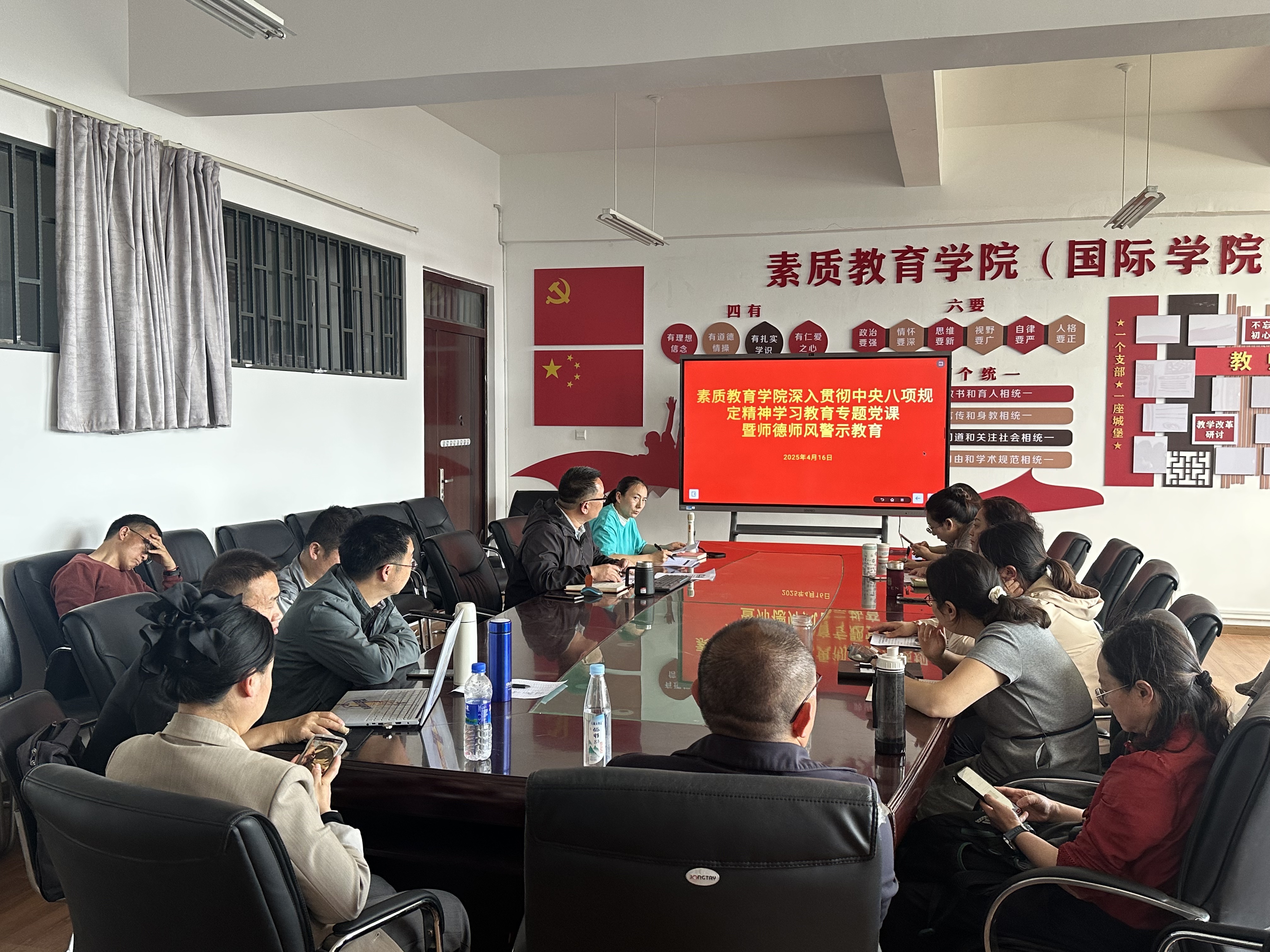 4月16日,太阳成城集团tyc234cc官网召开了深入贯彻中央八项规定精神学习教育专题党课暨师德师风警示教育会。全体党员干部及教职工参加会议