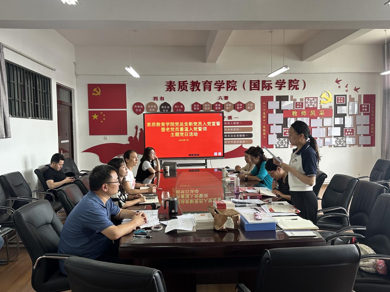 7月9日下午,公司党总支在笃行楼614会议室举行新党员入党宣誓暨老党员重温入党誓词主题党日活动。公司主要党政领导、各支部书记及全体党员表参加。活动由基础教育党支部书记刘婷婷主持。