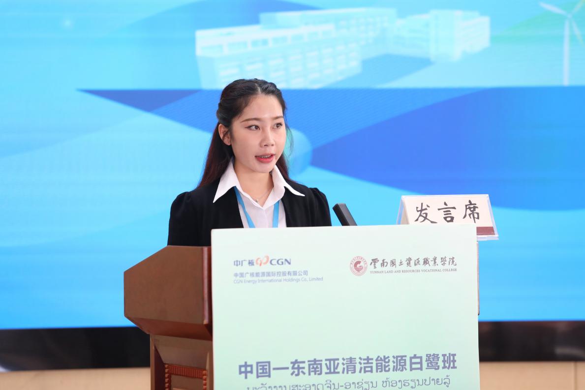 老挝培训学员贝贝作为学员代表发言,回忆了培训期间学习和生活的点点滴滴,表达了对中国广核能源国际控股有限公司、公司以及培训老师们的感谢以及对美好未来的展望。
