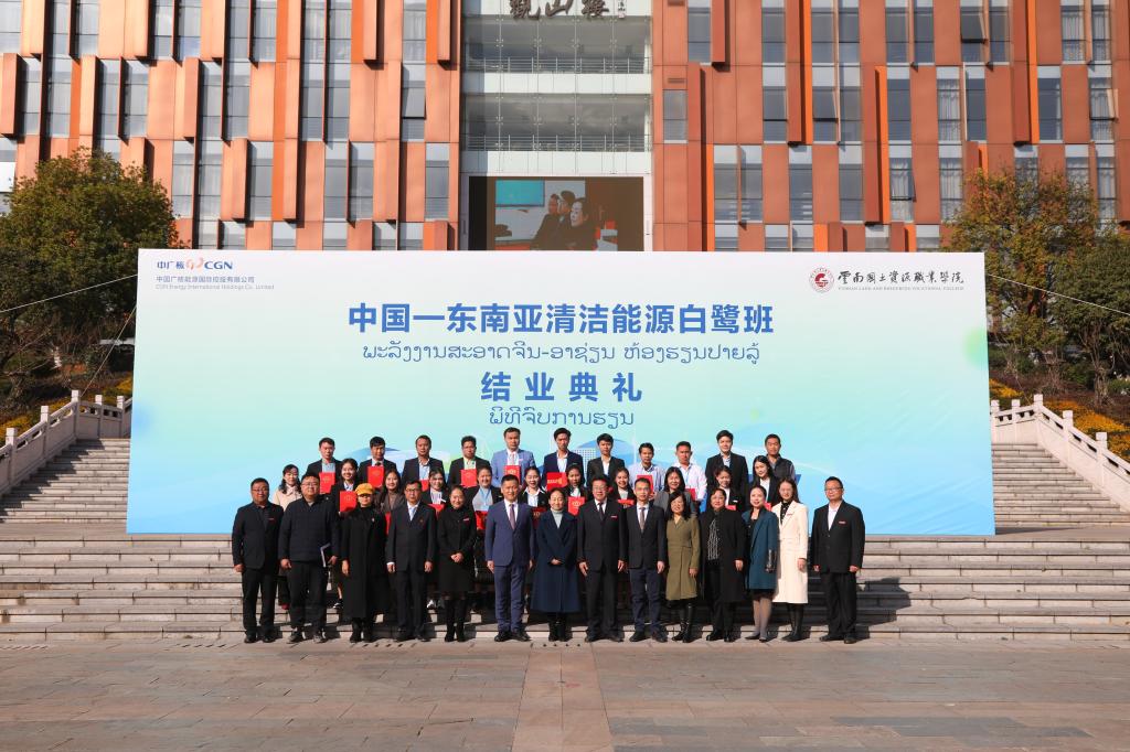 1月11日,第一期中国-东南亚清洁能源白鹭班结业典礼成功举行。来自老挝的20名培训学员经过对新能源行业基础知识、安全管理、运维管理、风光电站现场实操等方面近一个月的培训,完成了技能知识和实操水平的考核并顺利结业。