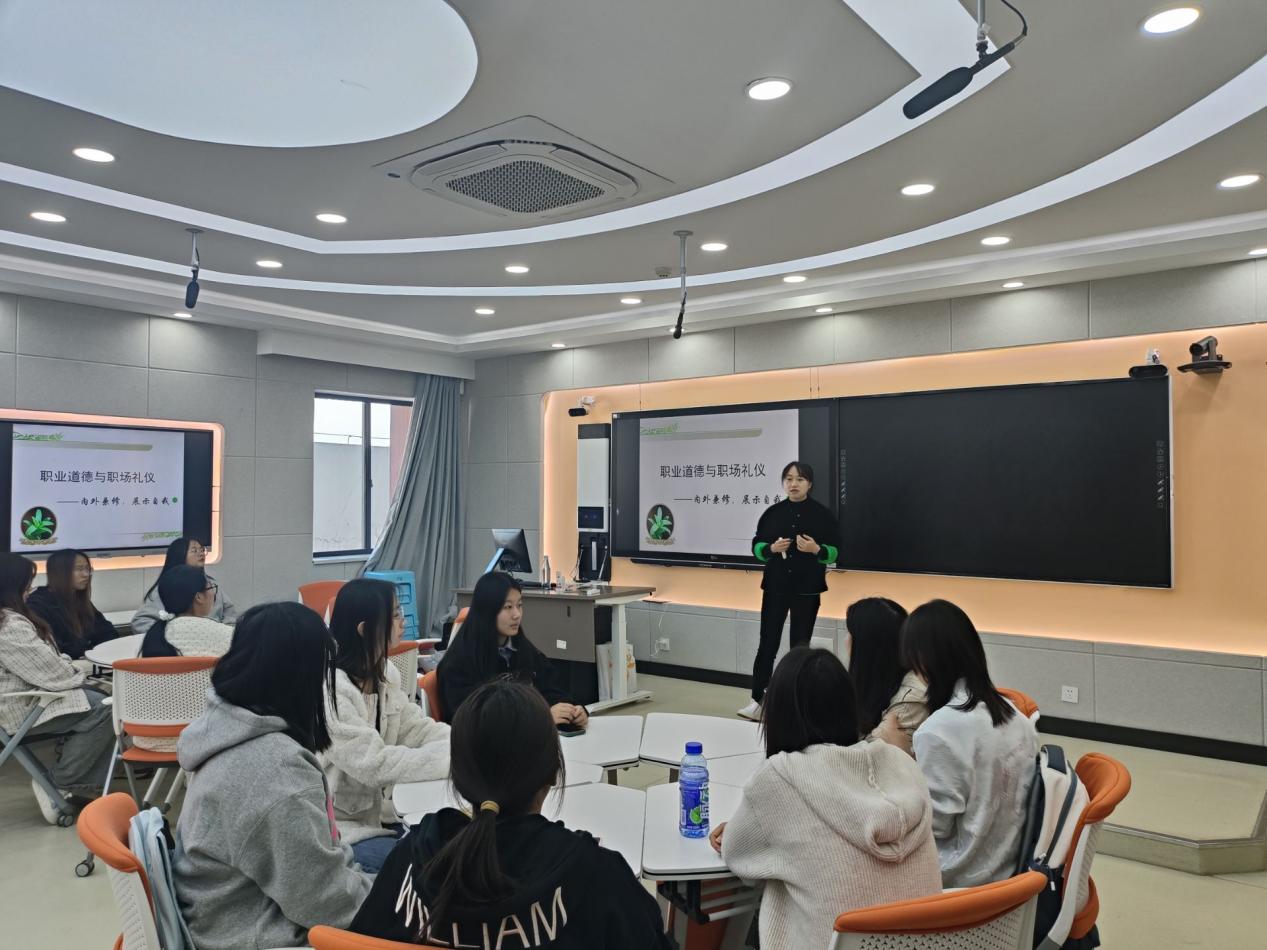 12月11日下午,太阳成城集团tyc234cc官网邓月婷平老师在阳宗海校区崇实楼505教室开展了主题为“职场道德和职场礼仪”的职业规划咨询讲座。讲座吸引了各个公司的40余名同学参加。