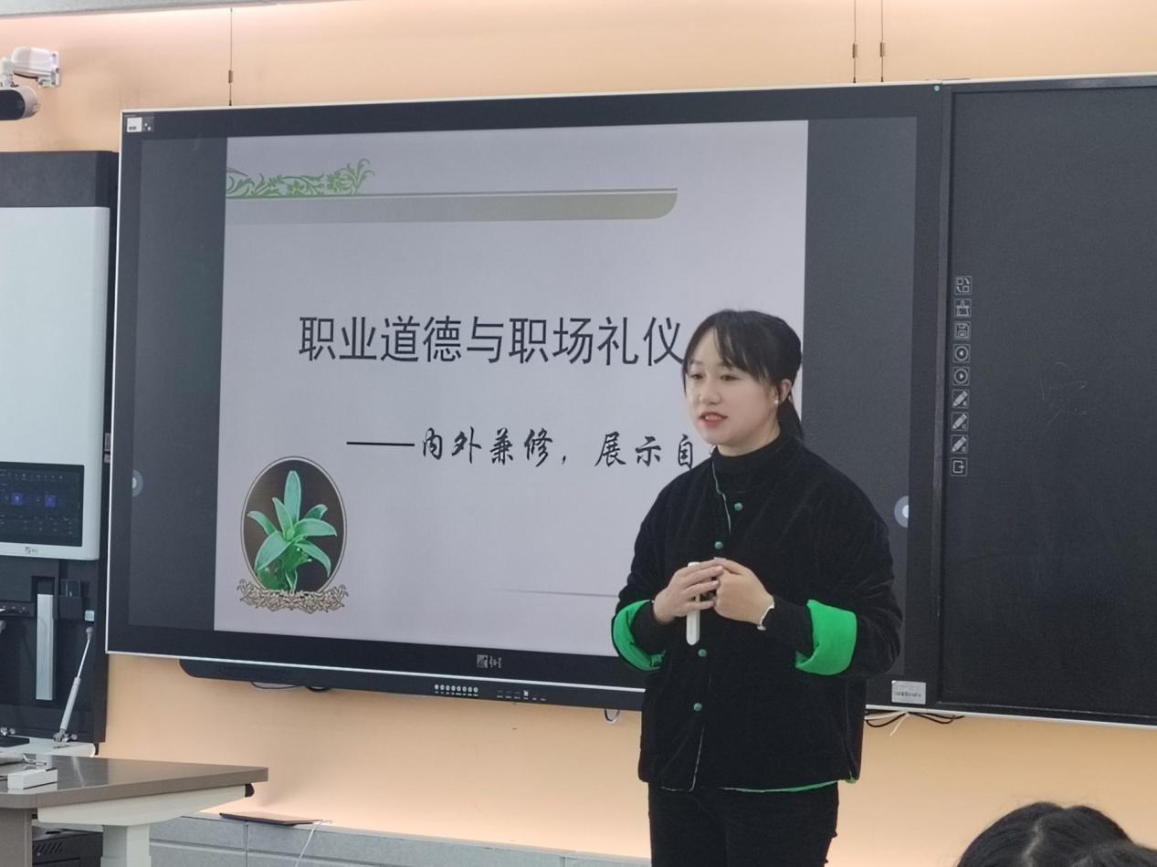 邓月婷从职业道德内涵、职业道德的核心、职业道德的基本规范、职业道德的基本原则四个方面展开。邓老师指出,职业道德不仅是职业行为的规范,更是个人品质的体现。它要求我们在职业活动中遵循诚实守信、公平公正、敬业奉献等原则,以维护职业形象和职业声誉。在讨论职业道德的基本原则时,邓老师提出了“诚信、责任、公正、尊重”四个关键词。他通过实际案例分析,让同学们深刻理解这些原则在实际工作中的应用和重要性。
