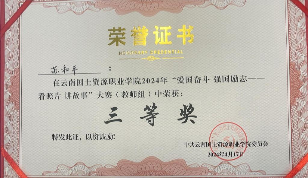 素质教育公司党总支选派参加比赛的苏和平同志以《扶贫之路——图片记录国土人在怒江扶贫瞬间》为题进行了讲解,最终荣获校级比赛教师组三等奖。