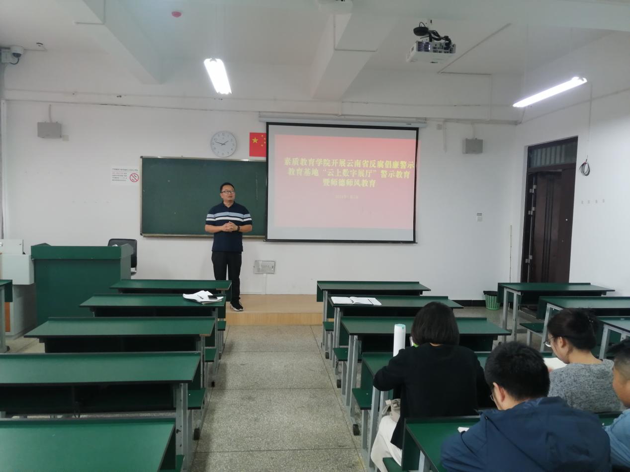 6月5日,素质教育公司党总支在笃行楼517开展党纪学习教育专题学习暨专题党课,以线上形式参观云南省反腐倡廉警示教育基地“云上数字展厅”,对全体党员和全体教师进行警示教育暨师德师风教育。